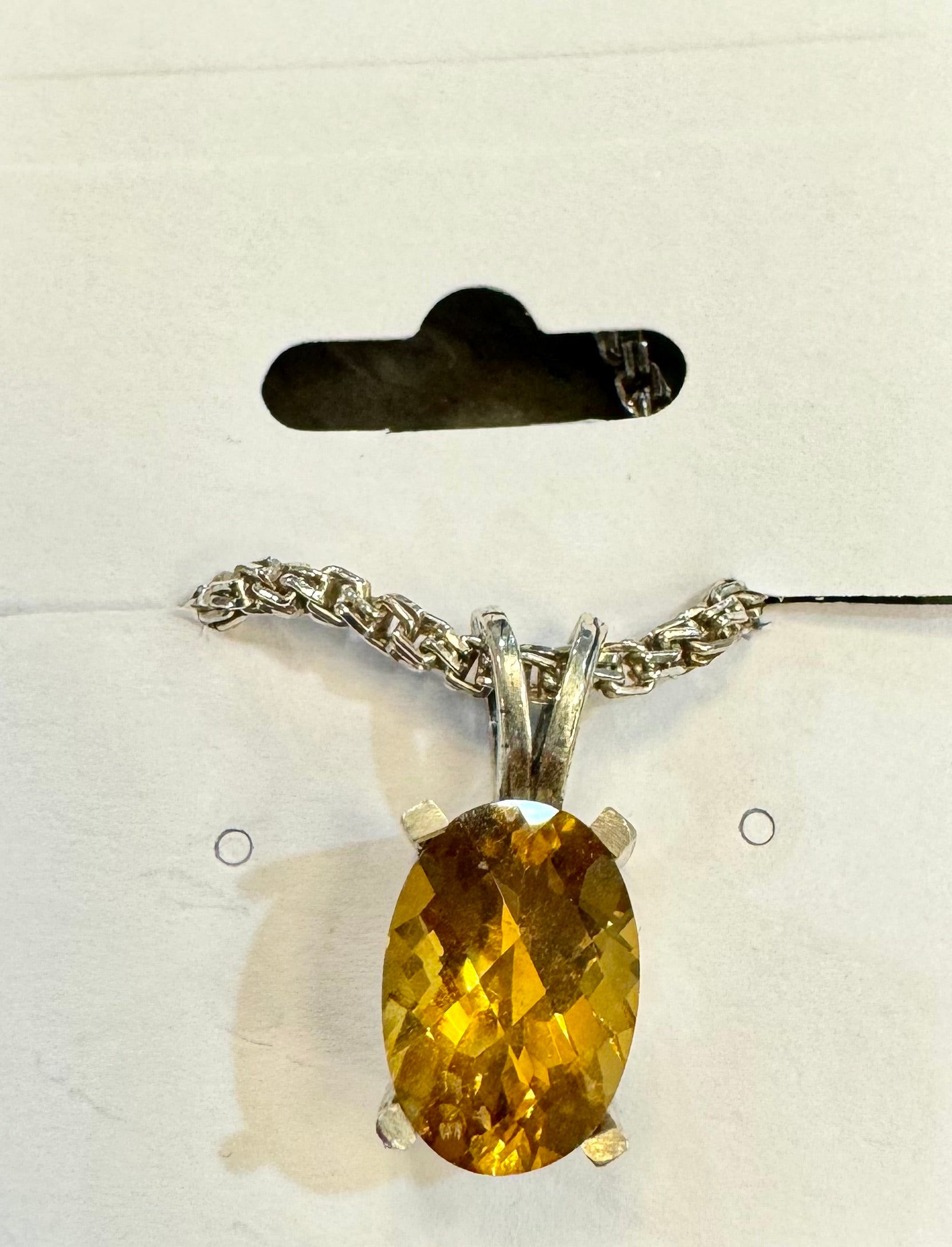 This necklace features a 14x10mm oval orange/yellow gemstone, providing a unique and vibrant touch to your ensemble.